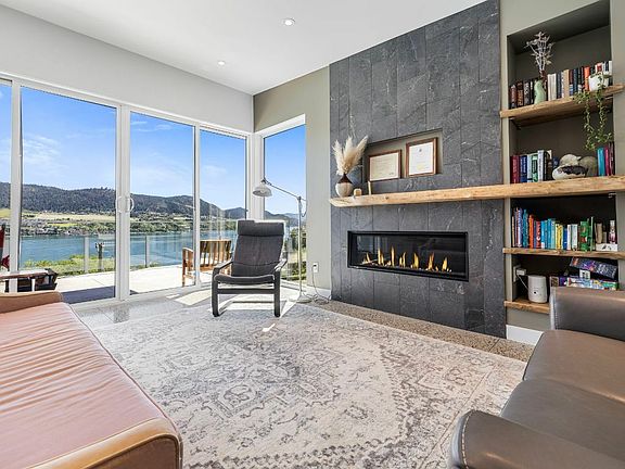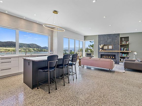 *AIR B&B/SUITE* Welcome to Par 5 Lakeview in Vernon. Discover a collection of five masterfully designed residences, carefully curated on this gently sloping terrain handpicked for its exclusivity. Unit #1 invites you in with its natural quartzite accents seamlessly blending the outdoors in. In the foyer you are greeted by the terazzo polished concrete flooring which is found throughout the home. On the main floor, enter the primary bedroom with panoramic Lakeview, four piece ensuite with soaker tub and large walk in shower with tiled bench. The floating riser staircase with structural glass screen wall guides you to the top floor with gourmet kitchen adorning quartz and quartzite counter tops, gas stove and imported euro line high gloss cabinetry, two additional bedrooms, living room and guest bathroom. Over the fireplace sits a custom live edge mantle made from elm harvested from the property. The space, adorned with light through huge picture windows and oversized sliding doors which lead to an expansive sand finished concrete patio with towering lam beams and glass railing providing unobstructed breathtaking views of Okanagan Lake. The lower level offers opportunity for rental suite or Air B&B (potential for $3000+/mnth income). Complete with kitchenette, 4th bedroom, bathroom, ample flex space and second entrance. GST is included. Walk to the beach, sip wine well watching sailboat regattas from your balcony or chill in the media room, this property has it all.