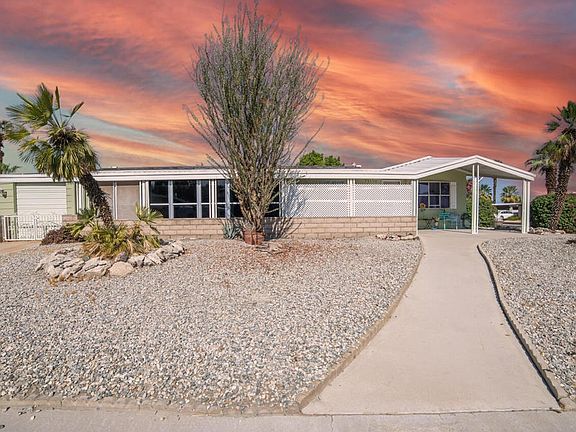 **This home has a 433A certification which makes it eligible for financing/on permanent foundation. This is an outstanding opportunity awaiting at an attractive price! This charming residence offers 2 bedrooms and 2 bathrooms, featuring a generous and illuminated open layout enhanced by expansive windows and recessed lighting. Nestled on a coveted corner lot, the home is primed for immediate move-in.The exquisitely renovated kitchen showcases state-of-the-art stainless steel appliances, sophisticated granite countertops, a central island and ample cabinetry to meet all your storage requirements. Each bathroom has been elegantly updated, infusing a sense of luxury into the living space. The interior has been meticulously enhanced with vinyl flooring, fresh paint, contemporary vanities, and chic light fixtures throughout.The adaptable sunroom opens up a world of possibilities, allowing you to personalize the area to fit your needs. The sunroom leads to your own closed in golf cart garage currently used for even more storage.Notably, the property features fully paid off solar panels, emphasizing energy efficiency with sustainable power solutions that help to keep your electric bills low year-round. Property also boost an exterior storage shed for extra storage. Constructed on a permanent foundation, this home simplifies financing--please inquire for further details! Located within the prestigious Palm Desert Greens Country Club, a premier 55+ community, low monthly HOA fee that includes complimentary golf on an 18-hole executive golf course, clubhouse with a restaurant and bar, cable TV, internet, 3 pools and spas, bocce courts, pickleball, tennis, trash removal and 24/7 security at the guard gate. Residents benefit from proximity to various golf courses, parks, hiking trails, dining options, shopping, and casinos. With land ownership this is an opportunity not to be overlooked!