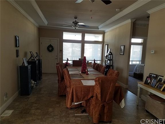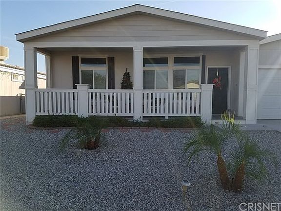 Welcome to this Beautiful, 2013 "Silvercrest" Home with a garage in the very popular 55+ Palm Desert Greens County Club. Driving up you notice the long, front porch for sitting and enjoying the wonderful neighborhood. When you enter you walk into the modern, open concept living space. The home has a living room, dining room, modern kitchen that looks over the large family room , 3 bedrooms and 2 baths. Your eyes will be drawn to the decorative recessed ceiling in the living and family room, crown molding, baseboards, and custom paint throughout. The modern kitchen has plenty of dark, brown cabinets for storage, large island, and walk-in pantry for even more storage. All Stainless Steel appliances are included. There is a separate laundry room with included washer and dryer. Master bedroom is spacious with a walk in closet. The master suite has 2 sinks and a large walk in shower. Exit into backyard and enjoy the large, covered patio with views of the gorgeous mountains in the distance. There is even a ceiling fan to keep you cool. The HOA covers your golf, basic cable, trash, patrolled security and 24 hour guarded security gate. You will OWN the land, NO land lease! The Beautiful Community offers a 18 Hole Golf Course, 3 Pools, Tennis courts, Shuffle Board, Weight room, Restaurant, Bar and clubhouse. Plus many, many clubs for you to enjoy and meet new friends!! Included is a Golf Cart. Hurry, this home will not last!!