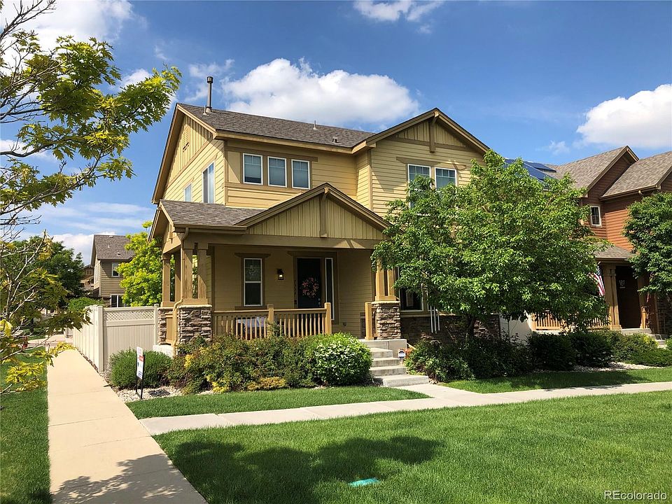 Exceptional Shoenberg Farms two story! One of the best locations in the neighborhood across from the huge park and large green belt in front of the house. Offering a spacious master bedroom with huge ensuite bath, two additional bedrooms with access to full bath, and large loft with huge windows to take in the Mountain Views to the west from the upper level. Great main level with open floor plan and great entertaining space from the Granite/Stainless kitchen flowing to the outdoor living space to enjoy the fantastic Colorado days/nights! All new Coretec Plus HD flooring on the main and upper levels! Great laundry room on the main level and ample space in the unfinished basement to finish as you like! Nice corner lot location with extended covered front porch to relax! Walk to park, ball fields, and local trails. Location is perfect for access to HWY 36 to get to Boulder/Denver in 15 minutes. Close to new Westminster mall shopping and restaurants! Hurry and make this your new home today!