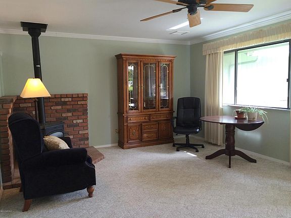 Updated home in move-in condition. Newer maple cabinets and appliances in kitchen (dishwasher new in June 2014). Family room with cathedral ceiling and French doors to back yard. Living room with wood stove. Jetted tub, separate shower and separate vanities in master bath. Huge master closet. Split bedrooms. Two full baths. Beautiful park-like .32 acre lot with huge mature pines, roses, etc. Private, fenced backyard, complete with tree swing. Grass is easy-care artificial turf. Storage shed in back yard. 5 x 9 workshop/storage room (door off of driveway). 1 1/2 car garage is 15' x 18' with B/I cabinets. Lots of paved parking, including RV parking with hook-ups. Plumbed for gas stove and dryer. BR #3 doesn't have a closet. Plans for 3 car garage are available.