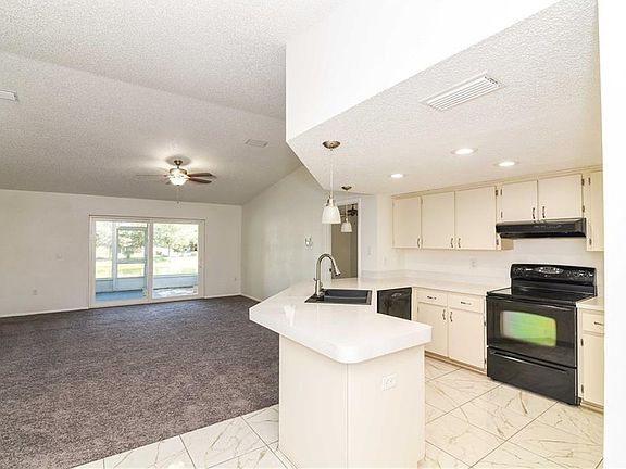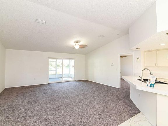 Beautiful 3 bedroom home in well-kept community of Woodbridge Estates. Foyer opens to large living room/dining room combo with new carpet. Eat in tile kitchen showcases matching appliances, breakfast bar, and breakfast nook. Newly carpeted master bedroom with en-suite bathroom with shower. Screened in lanai off slider overlooks grass backyard, and community pond. Perfect spot to relax at the end of the day. Home is located close to dining, schools, and about 5 miles from beach. A must see!!
