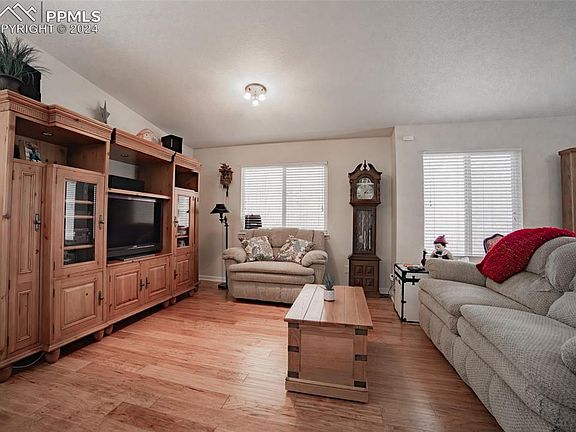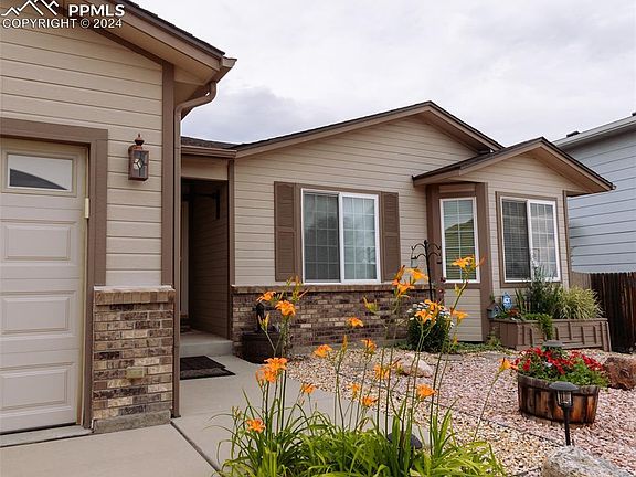 Welcome to your new extremely well maintained home! Main level living for that first time home buyer or wanting to "right size" down to something with no stairs, The interior of the home has updated flooring throughout the living room/Kitchen/Dining room/Primary Bathroom, With an open concept floor plan it makes it simple to chat with those from Kitchen to livingroom, Walk out the rear slider doors to enjoy your sanctuary back patio & yard-talk about peaceful and beautiful, The back yard is totally ready for the garden lover with tons of perennials that come back each year-it's all set up for you to take over - just easy peasy! In addition to this home clearly showing with pride of ownership you are also located just minutes from Ft Carson and Peterson AFB....parks and shopping right at your fingertips! **Bonus- Washer & Dryer**