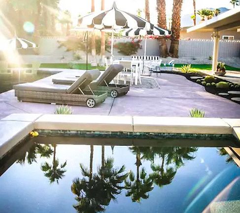 Amazing mid-century modern pool home perfectly appointed for your desert getaway located in historic Silver Spur Ranch originally developed by Bing Crosby and past home of many notable names from old Hollywood and the silver screen. We are situated just minutes from El Paseo Drive which features all of the best shopping and dining available...Louis Vuitton, Gucci, Tesla, Anthropologie, Saks and More! Also. just right across from The Living Desert Zoo. Three large bedrooms with super comfortable beds, TVS in each room with Hulu, Netflix, Pandora, Amazon. Plenty of seating in living spaces for entertaining and nicely remodeled kitchen. Backyard is an entertainers delight...huge 14k lot with a huge pool, waterfalls, and newly installed spa and firepit. Plenty of outdoor seating, chaise lounges, and both gas and charcoal grills. Golf cart, bikes, floats and lots of other extra amenities. Pool can be both heated or chilled.