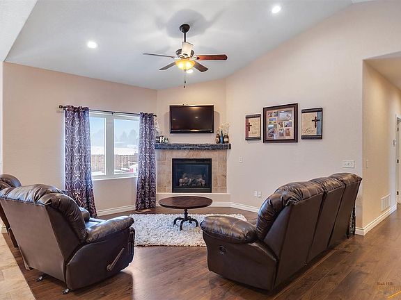 Incredible 4-BR, 3-BA house with spectacular views of the neighboring Black Hills! This wonderful Summerset home has a wide-ranging list of features that help make it the picture-perfect property for just about anyone. Built in 2015, this gem has retained nearly all of it's new-build feel, thanks in part to it's abundance of contemporary finishes, such as the stairwell tread lighting, custom-tiled master bathroom shower, closet lighting, trayed ceilings, and more. On the main level is an open-concept living room, dining area, and an awe-inspiring kitchen that features a beautifully-tiled back-splash, breakfast bar/island combo, and stainless-steel appliances. The main floor also plays host to the master suite, which features a trayed ceiling, and both a large walk-in closet as well as a private bath with dual vanity sinks and a tiled shower. As an added bonus, you will love the convenience of the main floor laundry, located in it's own mudroom! Not to be outdone by the main level is the home's nicely laid-out basement, where you will find a large family room that is complimented by a beautifully-finished wet bar. A full bath along with the nice sized third and fourth bedrooms are also located in the basement. Other features include a finished 3-car garage, recessed lighting and several over-sized ceiling fans, vaulted ceilings, a covered front deck, a 10x6 backyard patio, and a living room gas fireplace that is a perfect main level centerpiece. From the large backyard surrounded by a wooden privacy fence to the subdivision’s tranquil setting, this stunner will impress, inside and out!