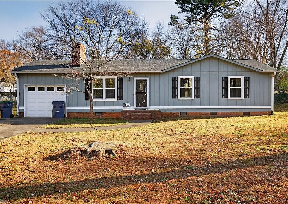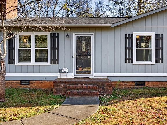 Charming Single level move in ready home! Living room with fireplace! Open and bright kitchen/dining area with tons of cabinet space. Dining space overlooks the fenced in backyard. Wonderful outdoor living offers rear deck, mature trees, firepit & storage building. 1 car garage with storage. Wonderful Rural Hall Community! Great access to shopping & restaurants and Major Highways. New Roof, Windows and Exterior Paint!
