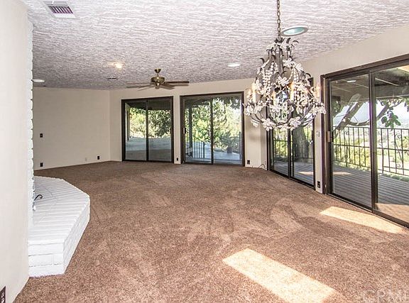 This custom home was owned by one of Riverside's colorful local artist's Carla Taniguchi, the property speaks of her love of colors! The Home offers spacious living with Beautiful brick fireplace in the living room with skylights and spectacular views! The kitchen has an abundance of cabinet space and lends itself for easy entertaining. Outside reflects her love of plants, trees and cactus gardens. There are numerous fruit trees such as grapefruit, oranges, tangerines, plums, figs, peaches, apricots and avocados. The hillside is also adorned with numerous rose plants. The owner created a special walkway through her large cactus garden, which contains numerous varieties of cacti and succulents. The owner was very proud of the diagonal ramp she had built, that follows along a zig-zag man-made concrete stream with waterfalls that light up at night, truly relaxing. The view from the patio is remarkable-- one of the best in Riverside. The night time lights are awesome and there's no better view for 4th of July Fireworks, than from this home. The home overlooks the groves along Victoria Avenue with Mt. Rubidoux in clear view, as well as other city landmarks. This home has a great footprint inside and out with so many exterior features and benefits.