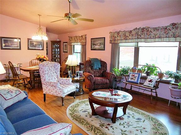 Situated nicely back from the street on three and a quarter beautiful acres, this home offers the best of everything. The full front porch overlooks the park like front yard. Enter into the great room which is spacious enough for the formal living and dining room. Don't miss the alcove with extra storage. An expansive kitchen includes white upgraded cabinetry, Corian counters, and a fabulous hearth room. Built in shelving frames the gas fireplace. The sun room is a four season room with amazing views of the back yard and the addition of a gas burning stove that brings romance and warmth anytime. A spacious deck includes a pergola and a small portion of the yard off the deck is fenced. The owners suite presents extraordinary space, private bath and lots of closet space. The basement is finished and also offers a separate work shop and equipment/storage area.