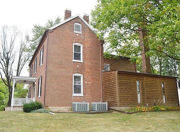 This 2 story brick home built in 1880 of basic Federalist design sits on 8 acres of land that offers beautiful views of the surrounding hills and valleys. At this time one of the lower rooms is being used as a bedroom, but could easily be transformed into a large formal parlor or living room. The home has 10ft ceilings and much of the original woodwork. An addition to the home features a large family room and brick fireplace. The home has 3,367 sq. ft. of living space. A partial stone basement along with a small shed and oversize three car detached garage. Large red barn to the northeast of this property does not belong to the seller and is not part of the sale.