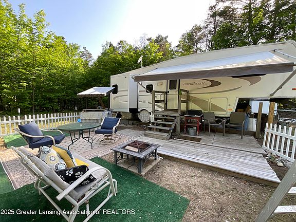 Northern Michigan retreat - 2 acres with 2 full hook-up camping sites & a camper. This beautiful private setting has so much to offer the new buyers. Currently, a well maintained fifth-wheel camper is hooked up to one of the sites. This property has a full septic and drain field and electricity. Natural gas hook-up available at the road. This would be a perfect building spot. Real Estate Agent must be present at all showings.
