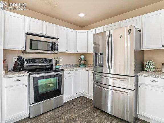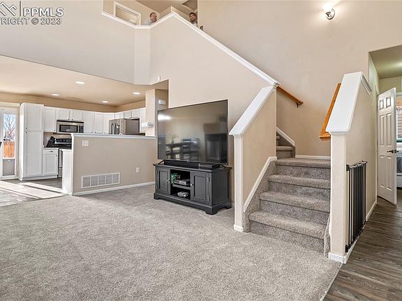 Incredible 5 bedroom, 4 bath, 2 car garage home in perfect condition located in a cul-de-sac near Ft. Carson. Very spacious open floor plan with vaulted ceilings, master bedroom on the main level, Gas fireplace, Large finished basement with rec room, Bedroom, Bath and Storage area. Stainless steel appliances in the kitchen, New carpet, Central a/c, Laundry on the main level. New Solar Panels (system-paid off by owner) to keep the utility bills super low. Fenced in backyard. Don't miss this gem!!!