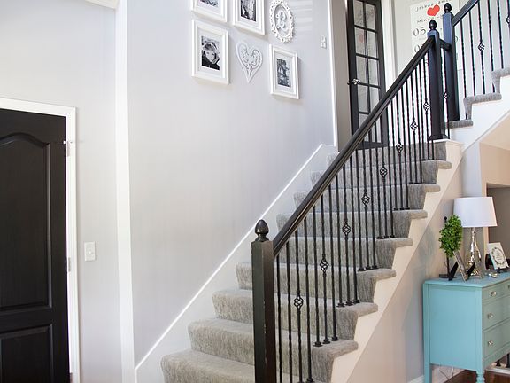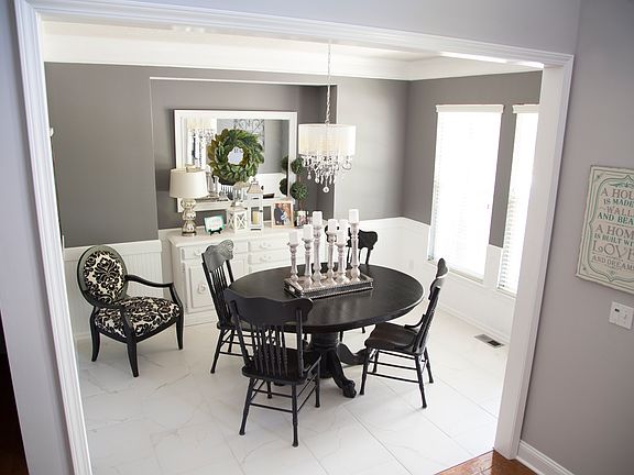 Impeccable two-story home located in Crystal Place has been tastefully updated w/modern colors & designer touches throughout! Elegant formal dining room w/tile floors, wainscoting & charming chandelier. Wood floors & stacked stone fireplace provides a warm ambiance in the great room that opens to the stunning kitchen w/custom gray cabinets, granite transition counter tops, large center island w/counter seating & stainless steel appliances. Finished basement offers a loft-style design.
