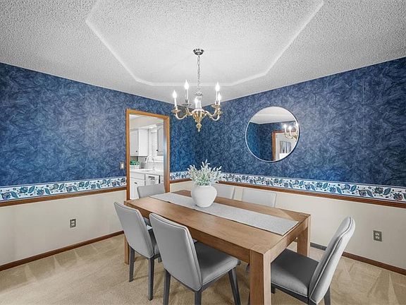 This stunning home offers everything you’ve been searching for! From the moment you arrive, you’ll be impressed by its charming curb appeal, lush lawn, and meticulously maintained landscaping. Inside, the inviting main level features a spacious living room, ideal for both relaxing and entertaining. The kitchen and formal dining area, are perfect for hosting gatherings. The family room, with its soaring cathedral ceiling, rich wood accent wall, and cozy fireplace, serves as the true heart of the home. A wet bar just off the family room makes entertaining during game day or holidays a breeze.