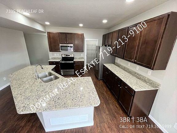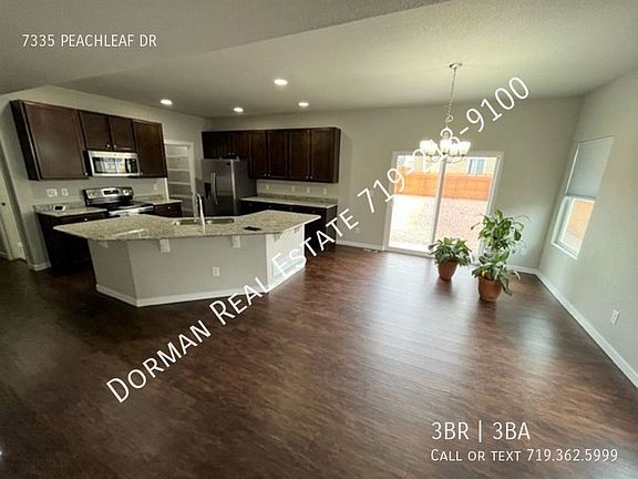This 3280 square foot single family home has 3 bedrooms and 2.5 bathrooms. This home is located at 7335 Peachleaf Dr, Colorado Springs, CO 80925.