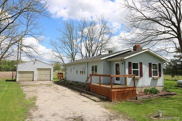Open House 5/11/2024 from 11am-1pm. Great opportunity on this three bedroom ranch home on a .65 acre lot on a paved road in between Millington and Vassar. The home has excellent curb appeal. The home has vinyl siding, architectural shingled roof, front porch, and a huge two tiered back deck. There is an oversized garage that was just painted and new garage doors are being installed (5/10). The interior has a good sized kitchen with lots of cabinet space and a formal dining area. Enclosed front porch. Nice sized living room room with fireplace. Master bedroom has its own private half bath. Main bath was just updated. Immediate occupancy available. Broker Owned.