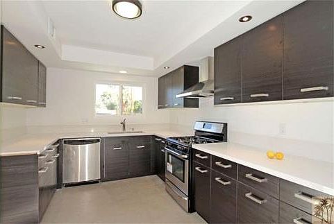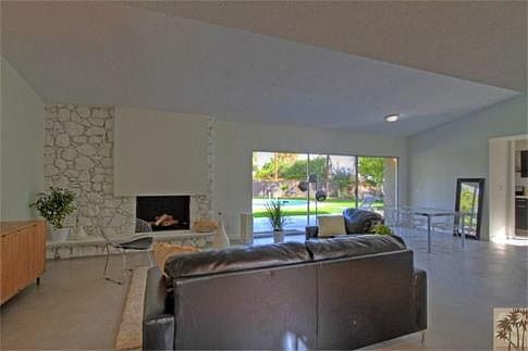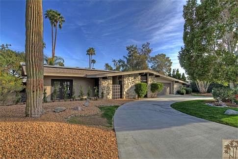 ~~Mid-Century Modern in South Palm Desert! This one has it all...inviting curb appeal, angled roof line, custom stone facade with dramatic semi-enclosed courtyard entry. Enjoy all the comforts of modern desert living with original mid-century details--airy interior with contemporary sleek ambiance. Open concept floor plan features living room with unique stone fireplace, walls of glass showcase lush backyard with sparkling pool. New kitchen has Caesar stone counters, dark wood cabinetry, stainless appliances (tons of storage & space!) Updated baths, light & bright throughout. True indoor/outdoor lifestyle--French doors & sliders open to patios, maximum privacy behind block walls. Your own three bedroom/two bath private oasis ideally located behind El Paseo shopping and dining.