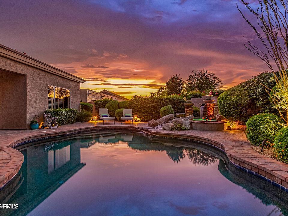 Wonderful Renovated Grayhawk home with pvt.pool,spa on a large lot with grassy yard. N/S lot gives the pool sun all day. 2023 updates of floors kitchen & bath, paint & lighting are timeless & fresh. Interior living spaces open to deep covered patio for outdoor living & a the lush rear yard. Reimagined kitchen opens to Great Room, Addl. Living Area offers gathering & dining options.Spacious primary bedroom provides pvt.spa bath,walk in closet, & vessel tub. 3 Guest. bedrooms are in separate wing; mini master has prvt.bath & walkin closet + 2 addl. guest bedrms with full hall bath. EV charger in 2car garage. All set in one of Scottsdales Premier Communities with all the lifestyle amenities that AZ has to offer and proximity to golf,dining,shopping,schools & world class events.No Lockbox