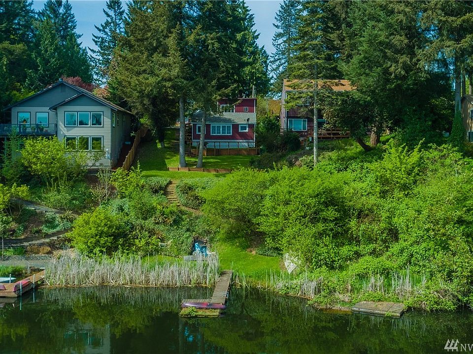 Peaceful Pattison Lake property w/56' ft of WF & Mt Rainier Views. Home has 2 two updated separate living quarters w/their own entries & living areas. Unit A on the water side features 2BR, 1 bath w/gas log stove & Unit B offers 2 BR w/1.75 baths w/gas fpl, heat pump and lake views. Both units have W/D hookups. Also .4 acre lot w/RV hookup and a septic dump. Ideal summer spot for the snowbird or rent out one unit & use the other for outings on the lake! Plenty of opportunities here!!