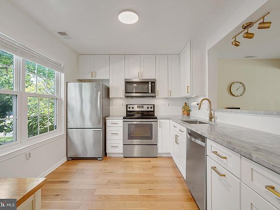 Welcome to this stunning, turnkey 3 bed, 2 bath sun-filled end-unit townhouse in Greenbelt. Not a detail has been spared in updating this beautiful home - the fully renovated kitchen (2020) boasts white shaker cabinets, sleek quartzite counters, which are the hardest stone you can buy and are heat and stain resistant, with stylish gold cabinet pulls and faucet, and stainless steel appliances. The open floor plan on the main level provides generous flow between living and dining areas. The light engineered hardwood floors are water resistant and resistant to scratches and dents, and span throughout the whole main level. The living room features a stunning marble tiled fireplace and easy access to the private and spacious fenced-in backyard. The upper level includes a large, sun-drenched owner's suite with generous built-in closet space and a renovated en-suite bathroom. Two additional bedrooms, a full bath, and convenient laundry access complete this level. Additional updates include new washer dryer, new fence ( 2015), new roof (2020), new energy efficient windows & vinyl shutters ( 2014), and replaced heat pump (2019), new water heater ( 2016), and new front door and sliding glass door (2014). Close proximity to Green, Yellow and Orange Line Metro Stops. Easy access to University of Maryland, NASA-Goddard, numerous parks, shops and restaurants all minutes from your front door. Additionally, two assigned parking spots and a smart doorbell convey. This home truly has it all!