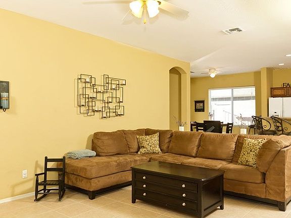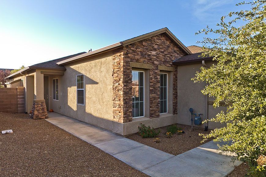 Here is an attractive and very functional floor plan with an open kitchen to the great room making for nice traffic flow in this 1705 square foot home. A great single level home has 3 bedrooms plus an office, 2 baths and a 2-car garage. Rock accents on exterior of the home as well as on the hearth of the fireplace in the great room are just a few of the upgrades. Tile flooring is found throughout with carpet just in the bedrooms making for easy maintenance. A bonus is the wonderful landscaping with a level fenced backyard and a grassy area.