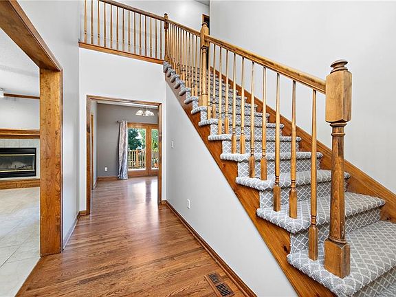 This spacious 4 bedroom, 3.1 bathroom home features a large family room with a cozy fireplace, perfect for entertaining. The primary bedroom boasts a spacious walk-in closet and en-suite with dual vanities, a separate shower, and jacuzzi tub. Large closets with built in shelves in the additional bedrooms. The walk-out basement offers additional entertaining space with a wet bar and large REC room. Enjoy access to the 2 neighborhood pools and the convenience of being close to shops and restaurants. This home is located in Liberty School District and boasts a newer roof, water heater, and appliances. Additional storage is available in the outside shed. Maintenance free composite decking is a great space to entertain family and friends!