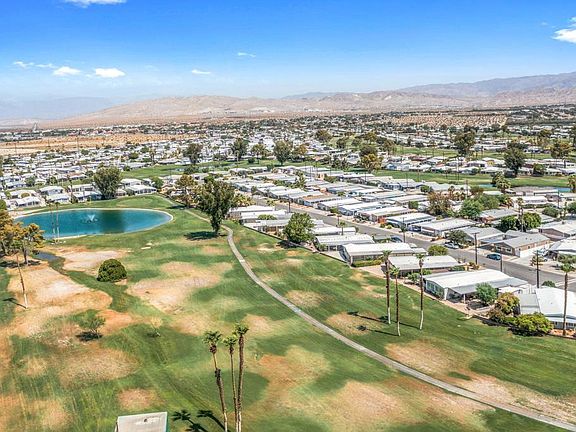 Lovely golf course home in Tri Palm Estates & Country Club! Located on the 16th fairway this well-maintained home offers spectacular panoramic mountain views from the covered patios (one of which features a private hot tub) and even from inside the home. Updates include flooring, sliding doors, plumbing, electrical, roof, and HVAC. The yard features low-maintenance landscaping, mature citrus, and even a golf cart with its own shed! The home is clean and turnkey furnished so it's truly move-in ready! Tri Palm Estates & Country Club is an active 55+ community where YOU OWN THE LAND and where ownership includes free unlimited golf on the 18-hole and 9-hole par-3 courses for two deeded owners, putting green, swimming pools & spas, tennis, pickle ball, shuffleboard, and use of the community clubhouse with its banquet hall, restaurant, bar, billiards room, and organized clubs & activities. It's located just minutes to Costco, Sam's Club, Home Depot, the Agua Caliente Resort & Casino, Acrisure Arena, and the Eisenhower Medical Campus. And with easy access to I-10 you're just a short drive to the dining, theaters and shopping in Rancho Mirage, Palm Desert and downtown Palm Springs. Come see this lovely golf course home and make Tri Palm Estates & Country Club your desert getaway!