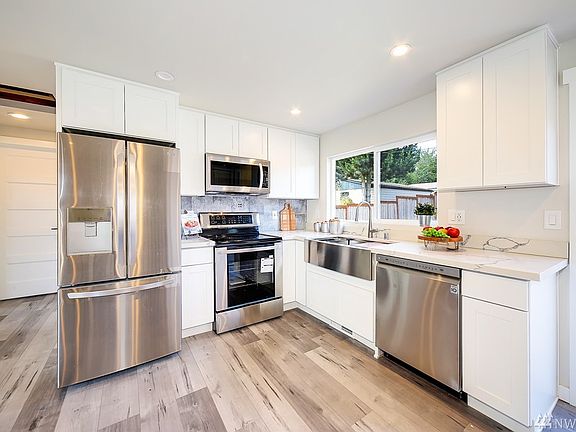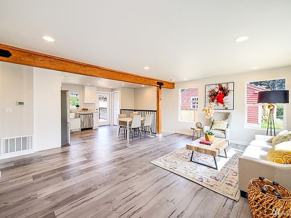 Adorable 3 bedroom, 2 bathroom home nestled on a quiet street in West Seattle. Like new construction, fully permitted, updated siding, roof, dimmable lights, bluetooth mirrors, new appliances, windows, floor and carpet. New plumbing and electric system, new water heater and energy efficient heat pump w/ AC, and fresh paint. Bright and open kitchen and living space, huge family Rm downstairs. Large deck and spacious backyard for entertainment. Park RV or boat. Close to schools, parks, and shops.