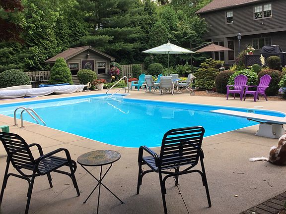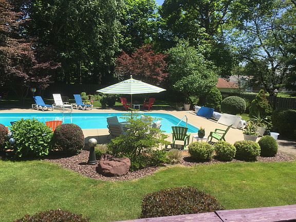 2 story traditional home on quiet street. A backyard oasis with an 18x38 in ground heated in-ground pool with large cement deck and pool house. 4 bedrooms with custom closets and 3 full baths. Spacious cherry and granite kitchen with built in high end appliances. Sub-Zero refrigerator, Viking 6 burner gas cook top, Fisher & Paykel double ovens, Electrolux Diswaher. Hardwood oak floors in LR, DR and FR. Large family room with vaulted ceiling and fireplace with gas logs. Year round florida room with limestone flooring and sliding glass doors. Two large finished rooms in basement. Convenient first floor laundry. 3 car attached garage with with attic and access to basement. Water softener, 75 gallon hot water tank. New central air/furnace in 2015. Security system for fire, intrusion detection, and water. Solid plaster wall construction throughout. New roof in 2009. 6ft. board on board privacy fence surrounding back yard. You will have plenty of space on this .67 acre lot!