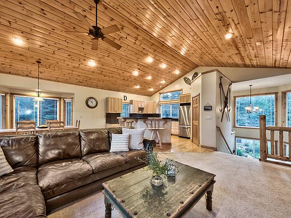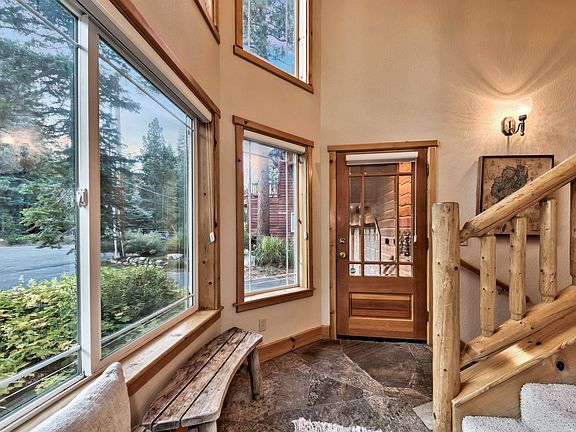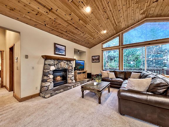 This remarkable home is situated at the end of a quiet cul-de-sac, offering a lifestyle intertwined with the natural beauty of Lake Tahoe. Immerse yourself in the charm of this residence as you step into the grand entry, where high ceilings and elegant stone floors create a welcoming atmosphere. Upstairs, you'll be captivated by the great room, where soaring vaulted wood ceilings and oversized windows frame the breathtaking wooded views, blurring the lines between indoors and nature. This versatile space encompasses the living area, complete with a stone fireplace, spacious dining area, and well-appointed kitchen with a breakfast bar and sizable walk-in pantry. Step outside onto the large deck off of the great room, where you can host gatherings, relax, and soak in the natural beauty that surrounds you. It's an ideal spot for outdoor dining or just enjoying the serenity of the forested backdrop. Two bedrooms upstairs, including a spacious primary suite with spa-like bath, offer a peaceful escape. Downstairs, a family room awaits, alongside two additional bedrooms and full bathroom. Stairs lead to the meticulously landscaped, fenced backyard—an ideal space for family fun outdoors with the built-in zipline, or a peaceful spot to indulge in a good book, surrounded by tranquility. This mountain home is a paradise for outdoor enthusiasts, with the hiking and biking trails of Sugar Pine State Park right out your front door, and easy access to West Shore attractions, including Sugar Pine Point Beach for summer relaxation and Homewood Mountain Resort for exceptional lakeside skiing.