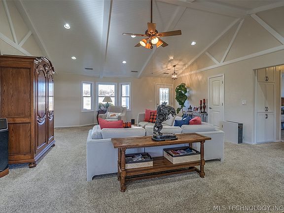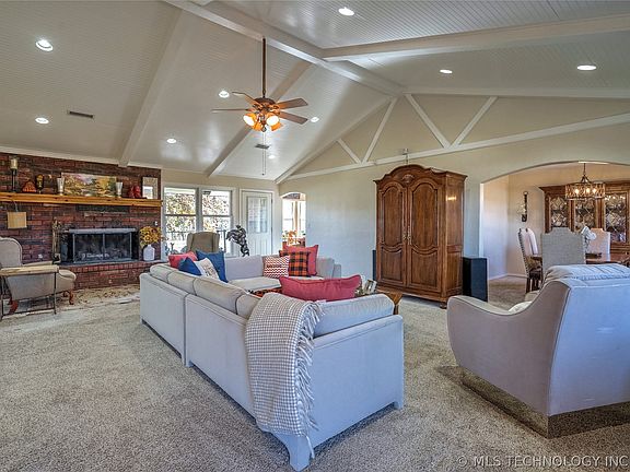 Beautiful 4 bed 3 bath brick home with Large family room, formal dining, vaulted ceilings, wood burning fireplace in living, and wood burning furnace on back patio. Updates include completely remodeled bathrooms, new paint, and much more. Also included is a 40x60 shop with 1 bed, 1 bath apartment upstairs, and 40x72 3 stall Barn and roping arena all on 52 Fenced acres with 2 ponds, would be prefect for horses. Seconds from turnpike with easy access to Tulsa. Owner/ Agent