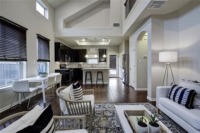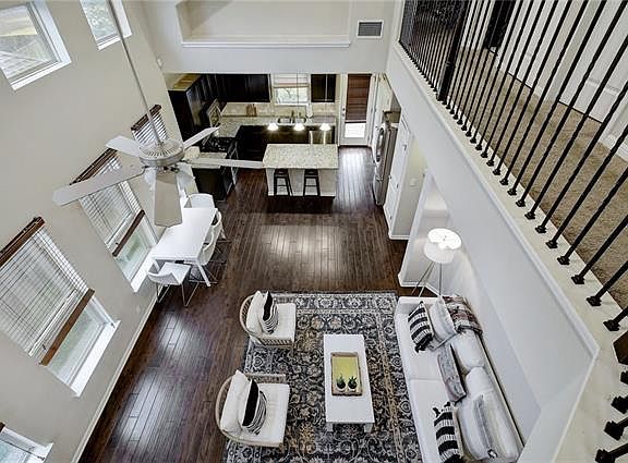 Fantastic home in hip South Austin. This free standing condo lives like a single family home with many desirable upgrades. 2 car attached garage, open concept living, soaring ceilings, wall of windows that let in tons of natural light, master downstairs, hand scraped wood floors, ss appliances, granite counters. Large upstairs flex space can be used for whatever you wish....family room, home office, kids play space! 2 more bedrooms and bath upstairs. HOA covers all yard maintenance!! Don't miss this one!