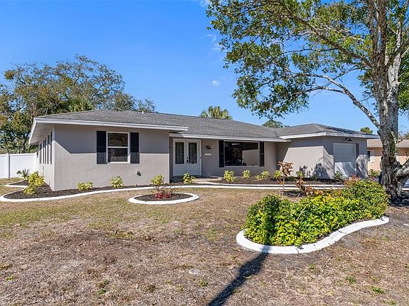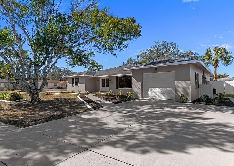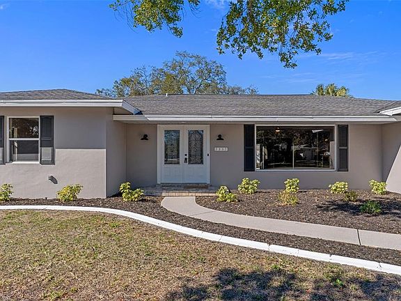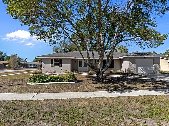 Welcome home to this inviting 4-bedroom, 2-bath residence designed with comfort, light, and easy Florida living in mind. An open, seamless flow carries you from the living room into the bright Florida room, creating a calm, welcoming space perfect for quiet evenings or relaxed gatherings. Open the French doors to extend your living space outdoors and enjoy the breezy Florida weather. The kitchen connects effortlessly to the dining area and features a spacious breakfast bar—ideal for morning coffee, quick meals, or unwinding at the end of the day. The thoughtful bedroom layout offers privacy for everyone, with a peaceful primary suite and generously sized secondary rooms. Step out to the screened patio and enjoy a tranquil outdoor setting. The large backyard offers plenty of room to relax, garden, play, or entertain, all enhanced by the openness of a corner-lot location. An oversized driveway adds convenience and extra parking. Move-in ready and thoughtfully arranged, this home offers a warm, timeless feel in a location close to shopping, dining, and everyday essentials. From the moment you walk in, it feels like a place to settle in and stay awhile.