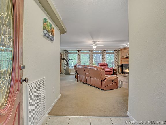 Calling All Hunters, Fishermen, Business or Hobby Buyers. 3 minute walk to Goose Island on Oologah Lake. 5 m/l peaceful park-like acres back up to Corps of Engineers greenbelt. Livestock allowed. Invisible pet fence surrounds the property. In-ground, fiberglass, salt water pool. New roof in 2022. Spacious home with every girls dream master closet. fresh paint throughout. Wood burning fireplace. Storm shelter. There are 4 outbuildings on the property. 2 of which could be finished out for additional living quarters. Tons of potential!