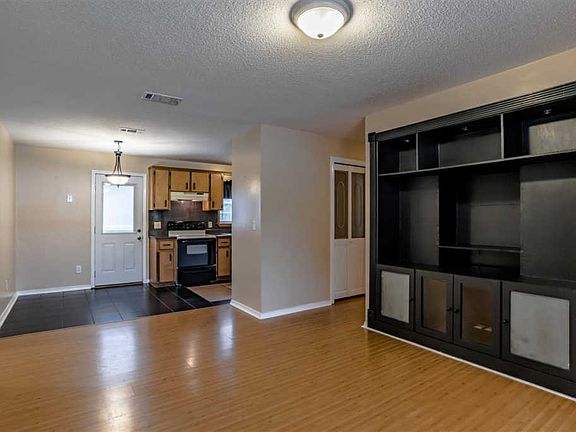 Take a look at this super clean and updated home that's just perfect for a first time home buyer or someone wanting to downsize. The covered front porch with it's 2 ceiling fans is so quaint and just waiting for a couple of rocking chairs. The sellers have designed some awesome features in the home allowing for a spacious and open feel. The living room features wood laminate flooring and a beautiful built in entertainment center that is recessed in the wall and includes lighting and glass front doors. The kitchen dining combo has decorative title flooring, custom cabinets and an exterior door leading into the backyard. There is a TON of room in the oversized laundry room and includes tile flooring as well as an exterior door leading to the carport. The same wood laminate flooring in the living room is featured in all three bedrooms keeping a cohesive feel as well as making cleaning and upkeep a breeze. All of the bedrooms have windows letting in plenty of natural light as well as ample closet space in each. The 3rd bedroom, although a bit smaller has an awesome built in wardrobe as well as a separate closet making it a wonderful space for a dressing room or an office but certainly suitable for a bedroom as well. The full bath includes an ornate freestanding vanity, linen closest and a tub/shower combo that has just been reglazed. The fenced back yard has an open patio and plenty of space for grilling out, entertaining or play equipment. You are not going to find a better property for the price that is in move in ready condition and has the updates this home provides. A new roof will be on by the end of September! Call today and get ready to fall in love with this charming home.