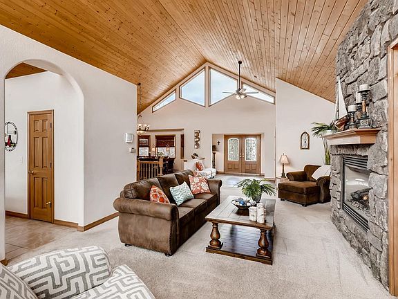 As you arrive at The Homestead's newest available residence, admire the curb appeal, newly stained log siding & professionally landscaped 2 acre property. Walk into the foyer & your eyes will be drawn upward to the knotty pine vaulted ceiling. This well maintained home includes new carpet throughout & boasts a beautifully updated kitchen with stainless steel appliances & island. The main floor master suite is a retreat with a sitting area, fireplace, 5 piece bath & large walk in closet. 900 sq ft of decks overlooks the lawn, which is a frequent deer grazing spot, as well as the mountains in the distance. The finished walkout basement with 10 foot ceilings is a terrific rec room that spills onto the stamped concrete patio. Storage is endless in this home! Kitchen pantry, main level laundry room, oversized 3 car garage & basement storage room spanning the entire length of the house! Best of all, you're only 30 min from downtown & minutes from endless outdoor activities in the mountains!