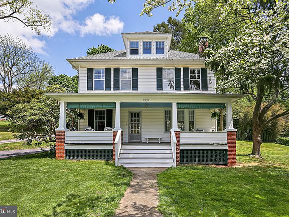 Welcome to 7337 Springfield Ave at its best! This vintage stately colonial circa 1924 built for the Clarkes has been a Sykesville landmark for nearly a century. The seller’s grandfather, Clarence Clarke, had the house custom built to his specifications, and was an important player in the Town of Sykesville, and one of the original founders of the town’s first bank. His daughter, Dorothy Clarke Schafer, lived her life here and made important contributions to Sykesville by starting the Historic District Commission and the Gate House Museum. The home is a historian’s delight and steeped in Sykesville history and tradition. Some of the custom design elements include cypress molding and doors throughout, southern yellow pine floors also throughout, French doors with original beveled glass, pocket doors, skeleton key entry, push-button light-switches, original chandeliers, upstairs sleeping porch, and a charming widow’s walk. Upon entry into the home, you are welcomed by a wide foyer hallway, a classic office/den on the left, a large family room with original brick fireplace on the right, formal dining room with bay window, updated kitchen with center island and original farm sink, large butler’s pantry, and a laundry/mud room with updated powder room. A beautiful hardwood staircase takes you to the second floor landing where you will find four ample-sized bedrooms (one with access to the sleeping porch) and an updated full bath and linen closet. Through another door you will find a staircase which leads you to the fourth floor complete with an extra-large bedroom, enormous walk-in cedar closet, the widow’s walk, and eaves storage. The lowest level features an unfinished basement with high enough ceilings to keep it as storage or finish it off as you wish. The outdoor space is as entreating as the inside – large front porch recently updated beckons you to entertain and enjoy the quiet avenue with sitting and dining space, yard with mature landscaping and open areas to use as you please yet private, 2-car detached garage, and chicken coop for additional storage or to raise chickens! New hot water heater installed last week. This property is truly one of a kind! Freshly painted throughout, open and airy, walking distance to Sykesville shops and eateries – a true Sykesville treasure! Proximity to dining, shopping, and major arteries - this home truly has it all! This home won't last long!