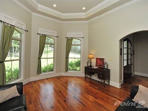 Private, Gorgeous Waterfront Setting in Spanish Fort! Fabulous Home on 8 Acres in Gated Community. Heart Pine Floors, 22-Ft Ceilings in Family Room, Arched Entry Ways, Tons of Molding, Open Kitchen w/Gas Cooktop, Beautiful Granite & Breakfast Nook. Huge Screened Deck Off Kitchen and Family Room. Superior Quality Home. Property is Located on Bay Minette Creek w/Access to Mobile Bay via Tensaw River.