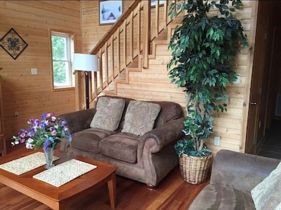 This beautiful 5 bedroom/3 bath home offers approximately 2,740 sq ft. of living space and sits on 0.87 acres m/l with a wonderful seasonal view of Dale Hollow Lake. The main level features a living area complete with Knotty Pine ceilings, Brazilian Cherry hardwoods and a wall of windows looking out into the beautiful foliage and a seasonal lake view. You will also find two large bedrooms, a bathroom, laundry room and a spacious kitchen with hickory cabinets on the main level. Just past the loft area upstairs, you will find the entry to the large master retreat which boasts a private balcony and bathroom. On the lower level of this home, you will find two more large bedrooms, a full bathroom and a recreational/entertainment area with a pool table and new commercial grade LVT flooring. With it's expansive wraparound deck, hot tub and beautiful views, the outdoor living space is just as inviting as the interior of the home. This home is offered completely furnished and all contents