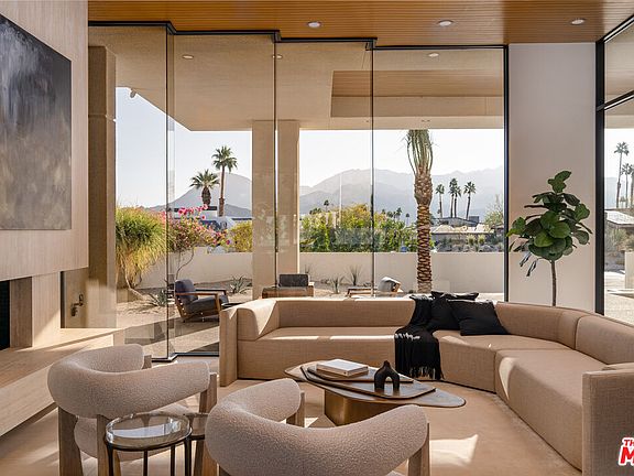Located behind the gates of prestigious Ironwood Country Club, 73380 Agave Lane is a stunning architectural retreat and the debut residential showcase by Los Angeles based designer brand Olivya Stone. Reimagined with exceptional craftsmanship, the home blends timeless desert architecture by Ross Stout with refined modern living. Walls of glass and 14' ceilings frame breathtaking east-west mountain views, filling the voluminous great room with natural light. Designed for effortless entertaining, the open layout integrates living, dining, and bar areas with a 12' retractable glass wall that opens to a resort-style outdoor experience featuring a dark-bottom pool, 12-person spa, outdoor kitchen with grill and pizza oven, putting green, sun deck, and nearly 1,000 sq. ft. of covered living space. The chef's kitchen with Wolf, Thermador, and Miele appliances captures an iconic view of Eisenhower Mountain from the breakfast lounge. The primary suite offers a private sanctuary with soaring ceilings, bronze-clad fireplace, spa-scale bath, massive walk-in closet, massage room, and direct pool access. Two additional guest suites, a den with dry bar, and a detached guest casita with living room, bedroom, and luxurious bath complete the property. Within the guard-gated community, residents enjoy two championship golf courses, tennis, pickleball, spa, fitness, and fine dining. Perfect as a full-time residence or sophisticated desert pied--terre, this home embodies the essence of luxury desert living just moments from El Paseo, private airports, and the world-class amenities of Palm Desert and Palm Springs.