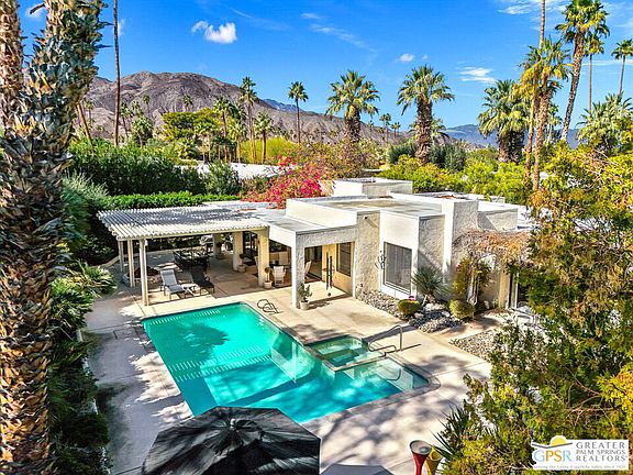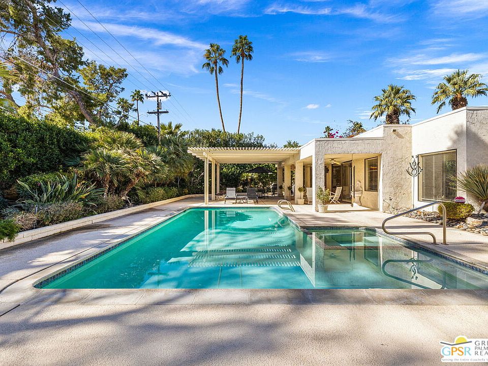 First time on the market in 25 years and ready for you to move into OR style up to 2025 design standards! Key highlights of this CLEAN 3 bedroom, 2.5 bath home in south Palm Desert include formal and casual areas, great separation of the Primary ensuite from the guest bedrooms, south-facing facing backyard with mature landscaping, private pool and spa, and views, and an attached two car plus golf cart garage. Blocks to golf and minutes to El Paseo Shopping District! Iconic mid-century inspired front doors lead to the south-facing living room with gas fireplace and a sliding glass door that opens to the private backyard. Adjacent secondary living area, den or formal dining room as well as a separate kitchen with casual dining area that opens to the covered patio and private backyard. Powder bath, too! Dual entry doors lead into the south-facing Primary Ensuite that offers views, access to the pool and spa, walk-in closet and a private bath with dual sinks, walk-in shower, separate step-down soaking tub with showerhead and sliding glass door that opens to the east-facing private patio. On the other side the house is Junior Ensuite Two with private patio and direct access to a private bath with walk-in shower. Bedroom Three looks out to a private patio and is across the hall from a bathroom. Attached two car plus golf cart garage.