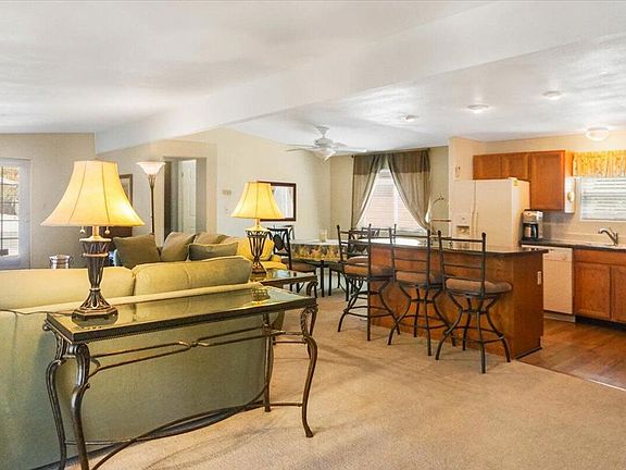 This home has it all starting with a double garage! Upon entering the home, the open floor plan has a spacious great room featuring the kitchen open to the living and dining area. The stove is brand new, and the kitchen cabinets are upgraded with pull out shelves. The gas fireplace adds to the decor. The split bedroom floor plan has two master suites! Double pane windows keep this home cool in the summer! The French doors lead out to a private patio with garden landscaping. The stucco exterior gives this home a unique and inviting curb appeal. A new roof was put on in December and the home has a Permanant foundation! Priced to sell this home comes partially furnished and ready for you to start enjoying resort living. The back gate is just down the street for easy ingress and egress. Call for an appointment!!