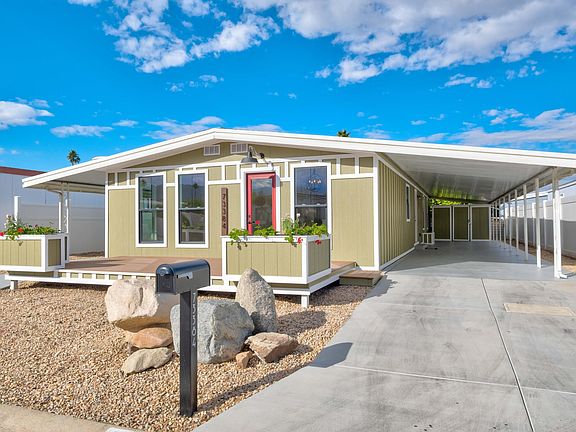 Fully renovated and improved from the studs. Feels and looks like a brand-new home. New drywall, plumbing, electric, insulation, Low-E Energy Star dual pane windows, Masonite/Jeld-Wen exterior doors, board & batten siding, American Woodmark custom cabinets, quartz countertops, SS appliances, tile backsplash and accent walls. New half inch plywood subfloor base under 7 ½ inch wide plank hardwood floors. Brand new composite deck with built-in planters. Large outside storage shed. Palm Desert Greens is a 55+ community with an 18-hole executive golf course with pro shop included in the low HOA fee of $323/month. Also included are cable TV/internet, trash, and security-staffed gated entrance. Other amenities include 7 tennis courts, 3 pools and spas, bocce ball, indoor shuffleboard, pickle ball, fitness center, driving range, large clubhouse with full-service restaurant and bar. Many clubs to join; cards, crafts, entertainers, singles, social, and more. Close to shopping. Disclosures and inspections are available.