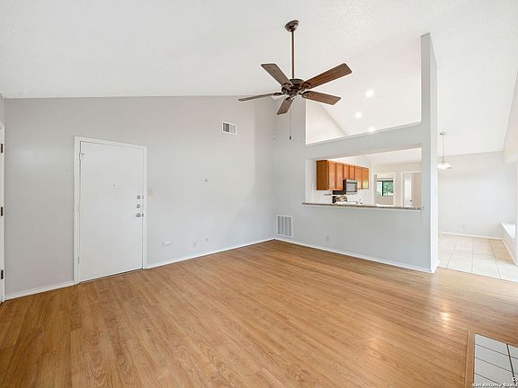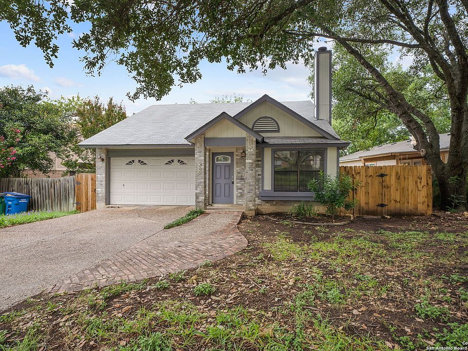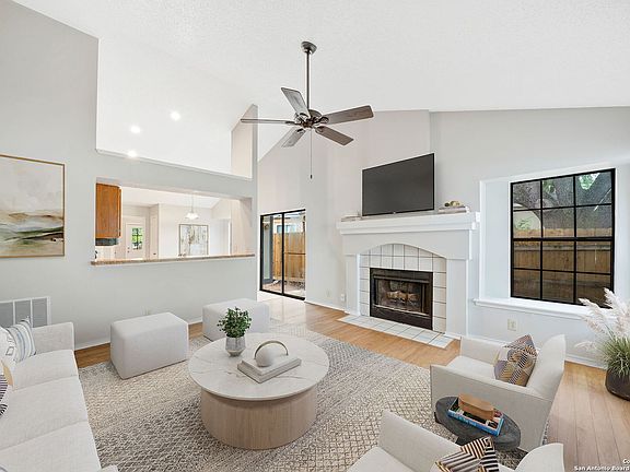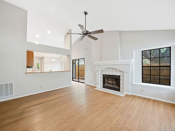 Welcome to your new home! This super cute single story 3 bed 2 bath is located in the desirable Hunters Chase neighborhood! Freshly painted interior and exterior makes this home feel like new! As you walk in, you are greeted by high vaulted ceilings allowing for lots of natural light, a cozy fireplace and beautiful wood floors! Relax in your large master bedroom with newly installed shower tile surround! 3rd bedroom could easily be made into an office space or craft room. Kick back on your wooden deck or set up the grill and watch the sunset! Conveniently located minutes away from UTSA, Medical Center, La Cantera,1604 & I-10! Walking distance to the elementary school, community pool, playground, amenity area that includes a sports court, tennis court & sand volleyball! Don't forget to bring your bike to check out the Leon Creek Greenway Trails! Schedule your showing today and see for yourself!