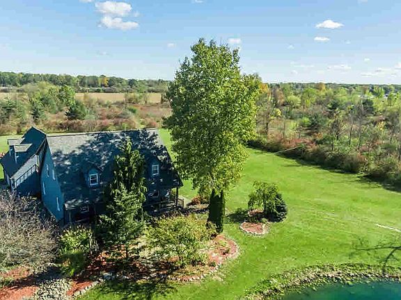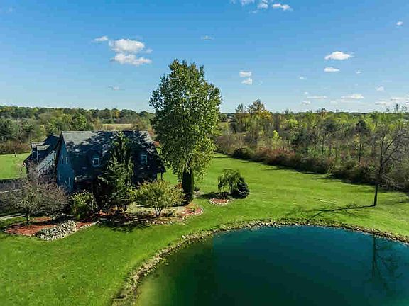 Beautiful home nestled on over 6 acres, beautiful pond with sandy beach area and so much more. 2866 Sq Ft of finished living space, 4 bedrooms and 2.5 bathroom. Open floor plan, soaring ceilings, great natural light and more. Spacious living room with open staircase, formal dining area with great windows and door wall leading to deck. Great kitchen with Corian counter tops, tile floors, lots of cabinet and counter space. Large master suite with private bath, large tub, separate walk in shower and more. Fantastic room over the 3 car garage, perfect office or rec. room. Full, partially finished basement, great storage and more. Large deck, beautiful patio, pole barn, nice landscaping, privacy and new roof with transferable warranty!