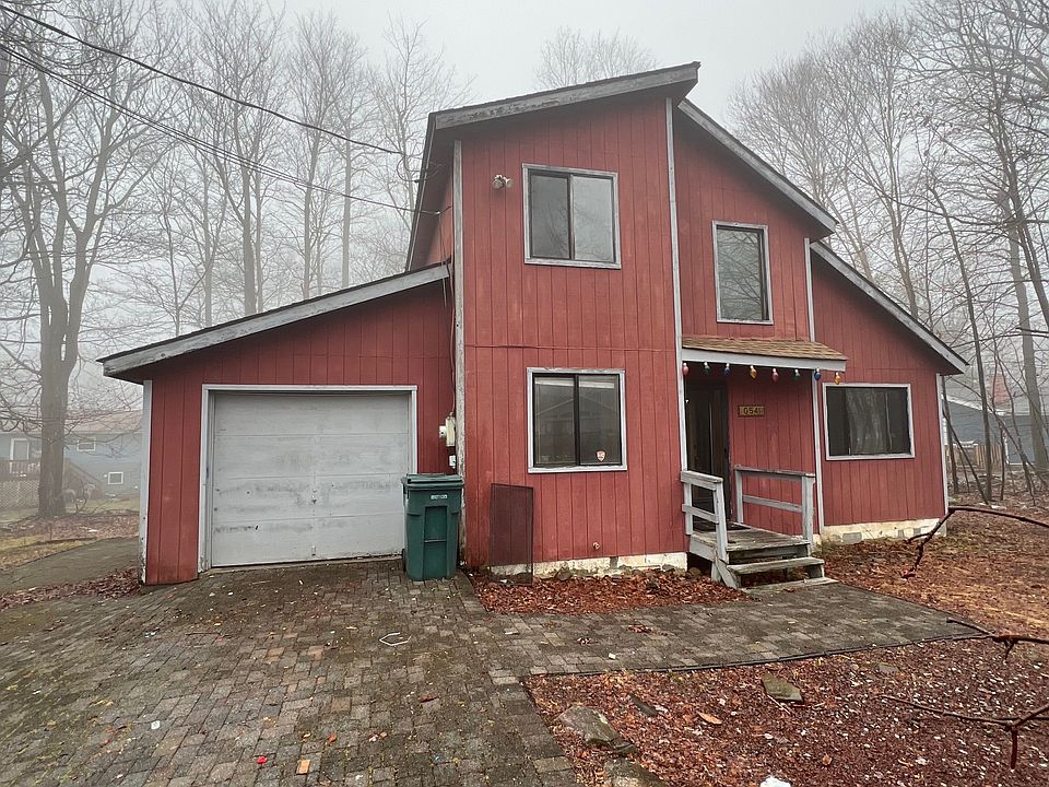 Discover this charming home in Pocono Country Place! This lovely residence boasts 3 bedrooms and 2 bathrooms with abundant natural light from multiple skylights. Inside you'll discover a spacious open-concept living/kitchen area with high vaulted ceilings and a cozy fireplace. The living room opens up to a well lit sun room which leads to the back deck/patio area. Enjoy a main level master bedroom and spacious bathroom. The owner has installed new laminate flooring throughout the home and new carpeting on the stairs providing a fresh feel. Upstairs you will find 2 spacious bedrooms and a bathroom with ample storage space. The home is complete with a 1 car garage, perfect for keeping your vehicle out of the weather or for storage/ work space. The community offers endless amenities such as swimming pools, tennis courts, and playgrounds. With local shops and restaurants, all within a short drive, all your needs will be met. No pets allowed. Tenant pays all utilities (Electric, water, Sewer) To schedule a showing, fill out our free pre-screening application on galvanizedmanagement,com