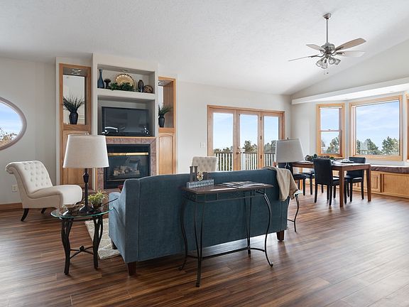 Beautiful ranch style home on sprawling 1.48 acres overlooking Rapid City! *4 bedrooms and 3 bathrooms *Large windows throughout for ample natural light *Chef's kitchen with hickory cabinetry, 6-burner gas stove, fantastic built-in for added storage, breakfast nook andbreakfast bar for added seating *Formal dining room flows into large living room for easy entertaining *Living room has gas fireplace,built in window seat with storage, vaulted ceilings and beautiful views *Main floor office space *Main floor master suite with walk in closet,4-piece bathroom with jet tub and custom walk-in shower, private fireplace, and views of the back canyon *Spacious walk out basementhas oversized family room, bonus in-law kitchen, exercise area with multi-person sauna, 2 bedrooms with egress windows and 1 bathroom *Ample storage throughout, including 8'x16' basement storage room *Attached oversized 3-car garage with built in storage space *Bonus RV parking pad with electric and water hookups *One of a kind back yard with gorgeous landscaping, sprinkler system (and drip system), custom retaining walls, curb-a-yard accents,maintenance free fence, custom stone patio with covered outdoor grill area (with gas and electric hookups, ceiling fan and lighting forentertaining), wood pergola with built in seating and custom waterfall feature. Located close to major medical facilities and easy access tomain thoroughfares, this home is a rare find- call today! Listed by Jeremy Kahler, KWBH, 605-381-7500. *Office space- 11'x14'