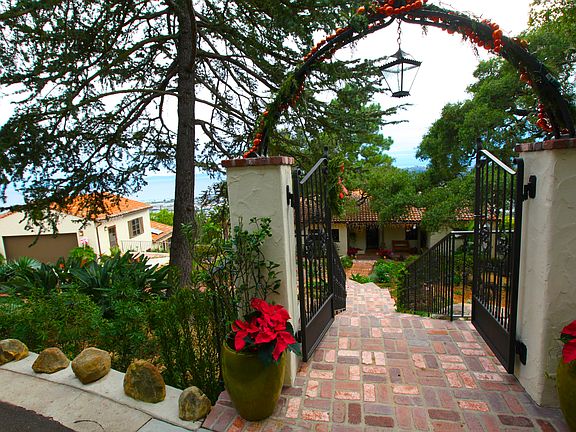 This historic Spanish villa was built by D'Alfonso in 1926 and features exquisite vintage details, dramatic 300 degree city/ocean/harbor views and a half acre of private gardens, raised vegetable beds and grounds. Called Casa Colina this home includes 3100 sq. ft. residence plus there is a newer 2-car garage and separate one bedroom guest studio w/ bath and its own view terrace. Extensively renovated in 2011 to include built in outdoor bbq, cooktop, pool, jacuzzi, pool terrace, pool bathroom and outdoor shower while still maintaining unique historic charm.