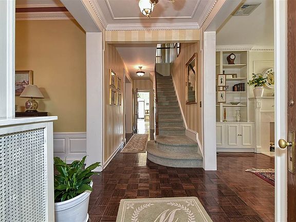 Prestigious and impressive center hall home. Formal living/dining room. Parquet & hardwood floors. Lovely modern kitchen with updated granite - updated baths with marble trim. 4 bedrooms, custom closets, full finished attic with 2 large rooms and skylight. 2 garages & driveway. Deck and lovely yard. A must see!!!!