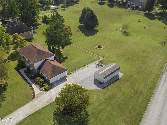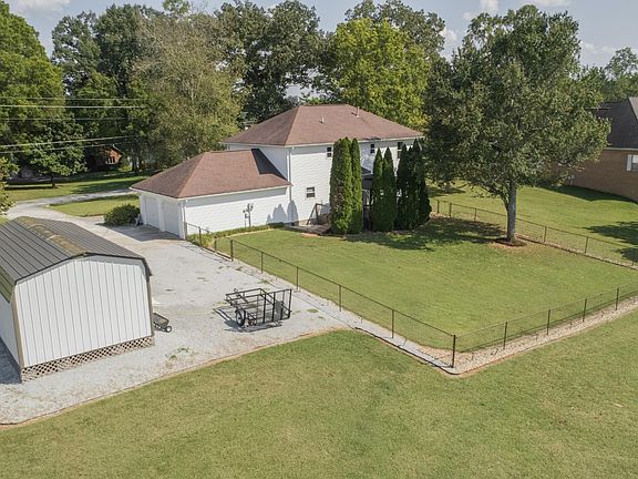Move in ready home with lake views and 1.37 acres. Williamsburg style home in area of upper priced lakefront homes. Many upgrades. 3 bedrooms/possible 4th. 2.5 Baths. New flooring main floor. Formal Dining room. Flex Room and Family Room. Breakfast room area plus Breakfast bar. Quartz Counter Tops in bathrooms. Granite Counter Tops in Kitchen and Stainless appliances, Refrigerator, washer and dryer included. All new windows, double hung and insulated. Oversized gutters and downspouts 2014. Plumbing upgraded including commodes. All baths updated. Insulation added to attic. Crawlspace encapsulated. All new lighting and fans. Septic pumped 2025. City Water. Natural Gas. Fenced backyard and wireless fence for dogs. Gazebo with metal roof remains. Blink doorbell and cameras do not remain . Large storage building. Available to home owners for an optional additional fee is a neighborhood pool membership and boat launch.