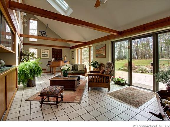 Come see this 2,877 sq ft, passive solar, Charlie Weedon built contemporary cape, all on 6.99 secluded acres.Wonderful floor plan with everything open and additional living space on first floor to be used as an in-law, studio or family room plus office. Or if you need a first floor bedroom plus bath this house has that too. Two wood burning stoves to keep the house toasty warm , but the passive solar does a great job in lieu of using a lot of oil. On the second floor there are 3 good sized bedrooms and two full baths. A whole house fan keeps the house cool in the summer. The 2 car attached garage has loft above for storage. Entire house has many closets and loads of storage too. Plus there is a barn with stalls for the horse enthusiast! A koi pond with stream provides soothing sounds of water while relaxing on the front patio.
